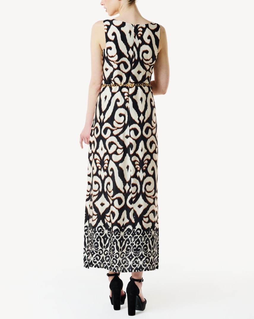 Φόρεμα μακρύ αμάνικο με διακοσμητική ζώνη αλυσίδα.