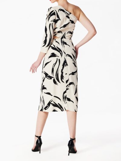 A-line pleated midi dress with puffy wide sleeves. Detailed, eye-catching matching belt.