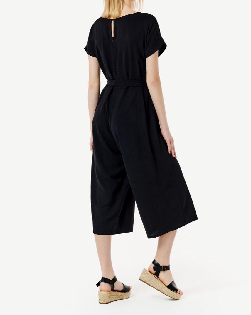 Cropped jumpsuit with japoné short sleeves, V-neck, loose elastic.